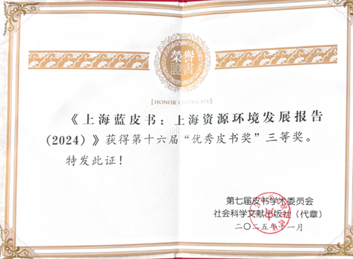 《上海蓝皮书:上海资源环境发展报告》系列报告曾多次获得皮书领域重要奖项,长期系统追踪上海生态环境治理与绿色发展进程,为相关政策制定和实践推进提供了有益参考。